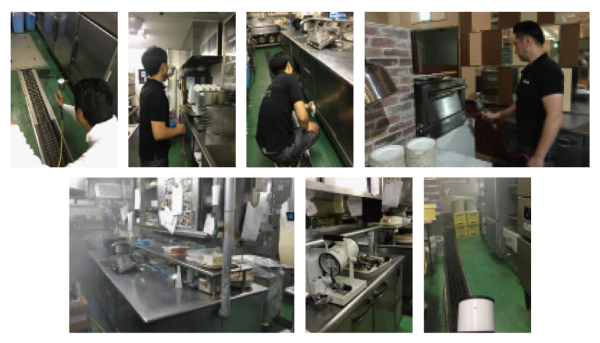 1度コーティングすれば約1年間は厨房全体が光触媒のバリアに守られ、例え菌やウイルスが持ち込まれてしまっても「不活化」し、 そこからの「接触感染」がしにくくなるとの事で、特に従業員に徹底しなくても厨房や機器は守られる。食中毒などの感染症リスクが大幅に 軽減できる事から導入を決めました。