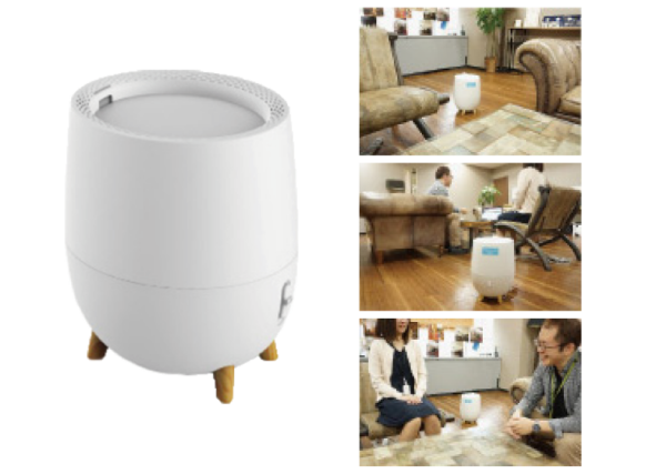 テスト利用当初は、臭いも消えて感染症予防にもなるという製品に些かの疑念も感じつつ、女性社員などへの告知もせず設置しました。 設置してものの5分で籠った臭いが消えていき、さわやかな臭いとともに、会議室内の空気がすっきりと浄化された事に驚きました。 翌日、早速、女性社員たちから「会議室に何か対策しました?」の声が上がり、10日間のテスト導入後、継続して利用する事が満場一致で決まり、6か所全ての会議室への導入が決定しました。